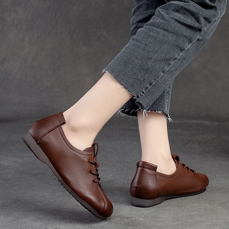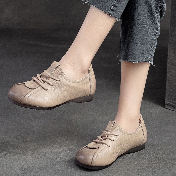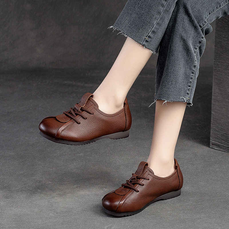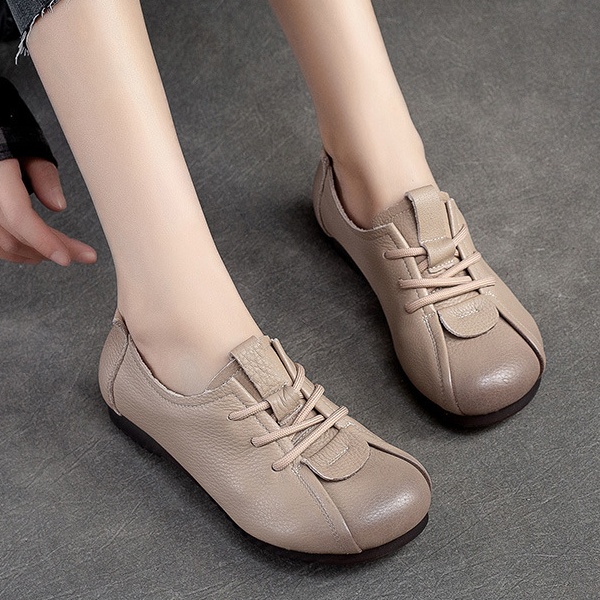Step into comfort and style with these retro – inspired mom shoes! Made from genuine top – layer cowhide, they feature a front lace – up design, a round toe, and a low 1 – 3CM heel for all – day comfort. The cow tendon outsole is durable, while the cowhide lining and pigskin insole keep your feet cozy. Perfect for spring and fall, these casual single shoes are great for office work, daily errands, or relaxed outings. You can choose from black, beige, or brown, and they come in sizes 35 – 40.