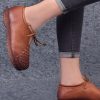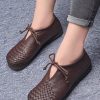 - Spring and summer retro leather with soft bottom lace up and flat bottom hand woven women’s shoes