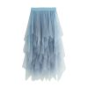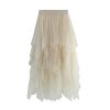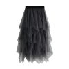 High Waist Slimming Flower Bud Irregular Mesh Skirt