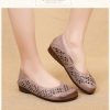 Breathable Genuine Leather Summer Shoes Woman Flat Heel Hollow Out Flats Slip On Shoes For Women Soft