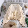 Women Short High Waist Sweater Single-breasted Knit Cardigan Top