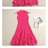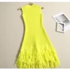 Knitted Mini Tassel Dress for Women Summer Beach Style A-Line Pullover