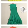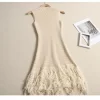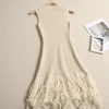 - Design Details: O-Neck, Empire Waistline, Sleeveless, A-Line Silhouette, Tassel Hem