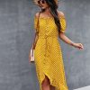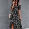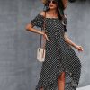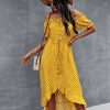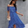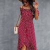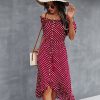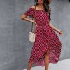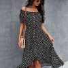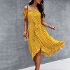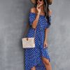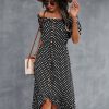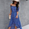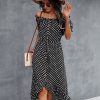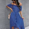 Ladies Dot Polka Print Dress Women Tassel Button Off The Shoulder Dress For Woman Sexy Slash Neck Spring Summer Dress