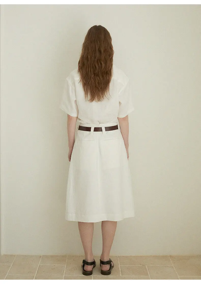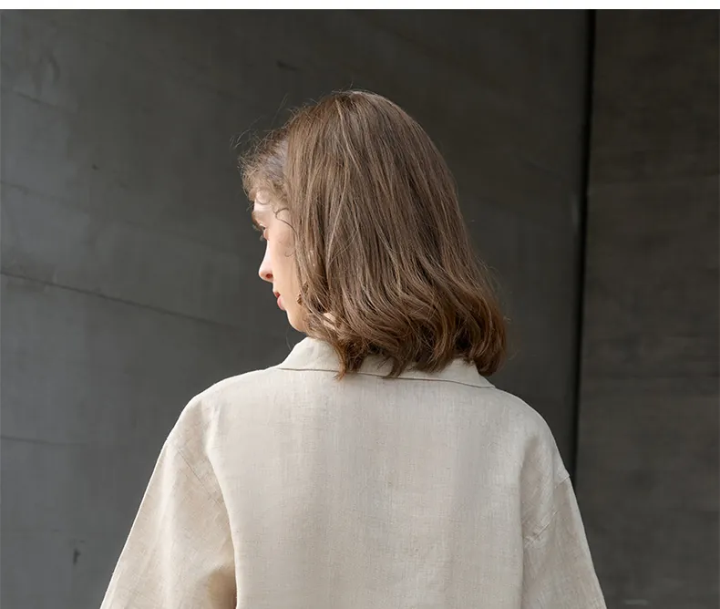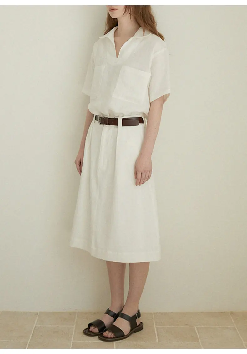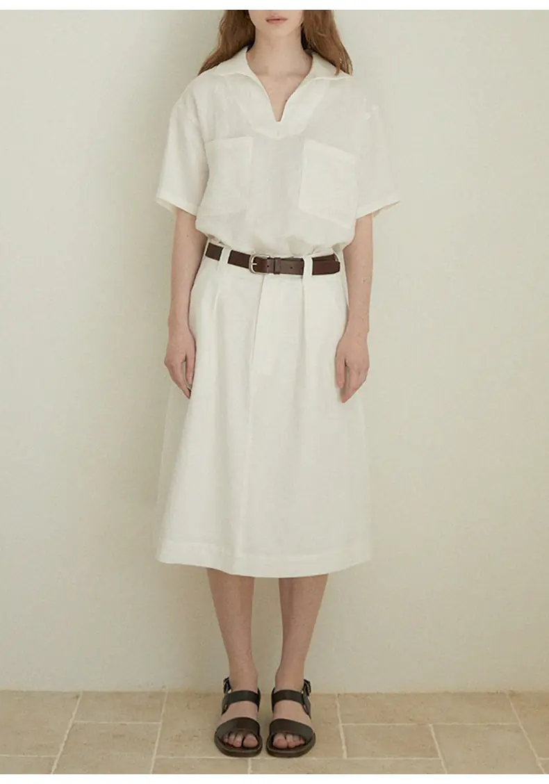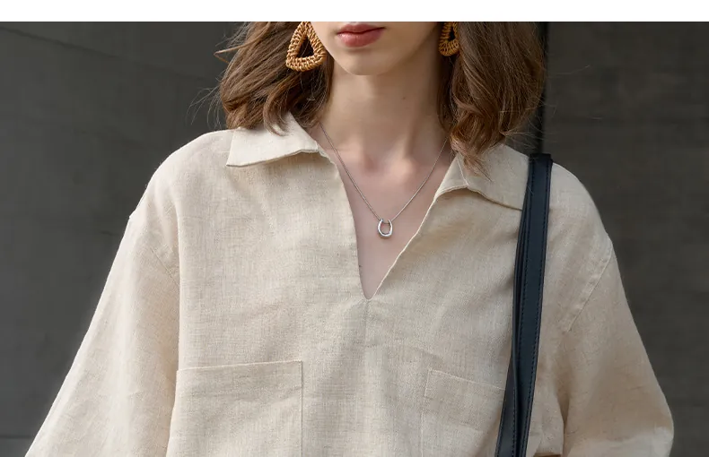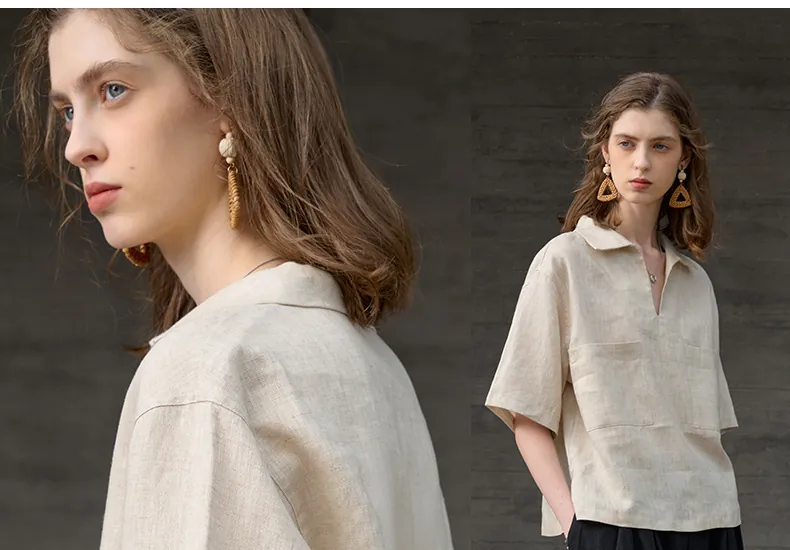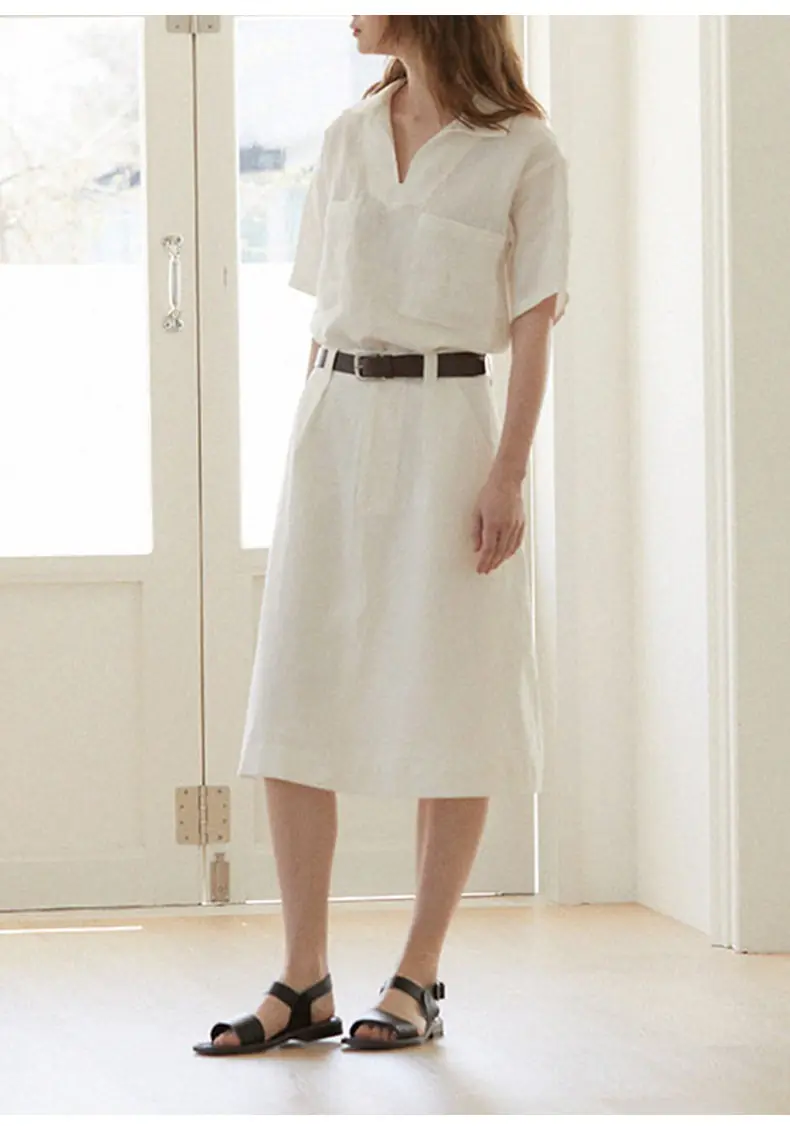Minimalist Breathable Pure Linen V Neck Short Sleeve Shirt