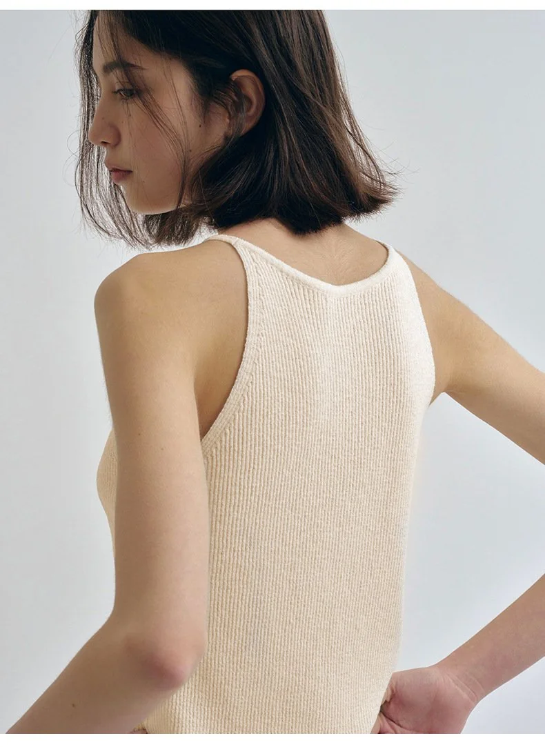 - High stretch rib knit & subtle button detail: Moves with your body without losing shape, small hardware adds understated texture to solid colour designs.