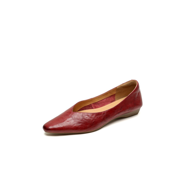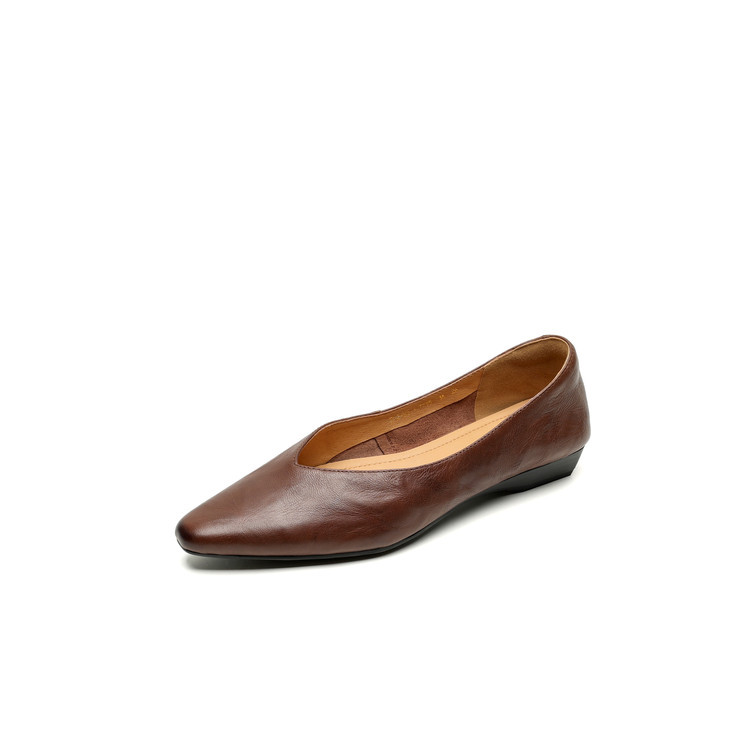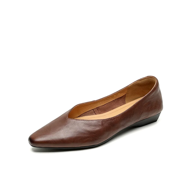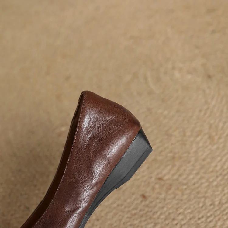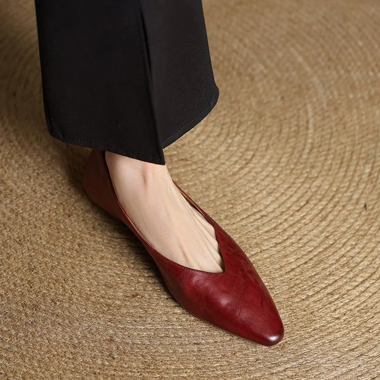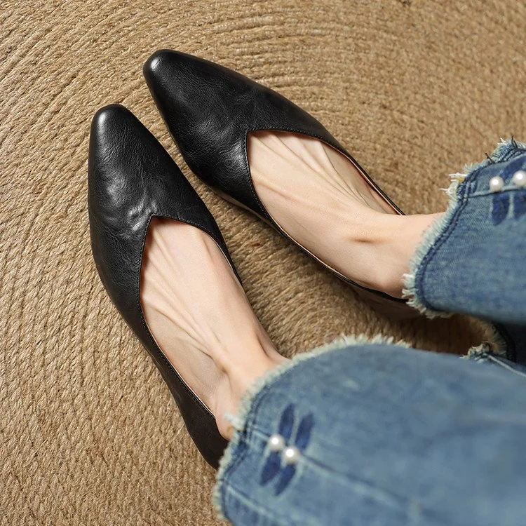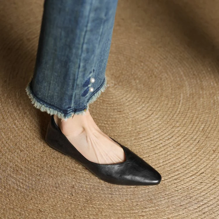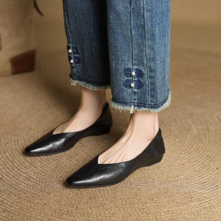 Minimalist Soft Sheepskin Womens Office Pointed Toe Low Wedge Shoes