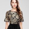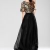 Women’s O Neck Short Sleeves Sequined Patchwork Fashion Long Party Prom Elegant Maxi Dresses