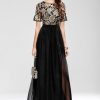 Women's O Neck Short Sleeves Sequined Patchwork Fashion Long Party Prom Elegant Maxi Dresses