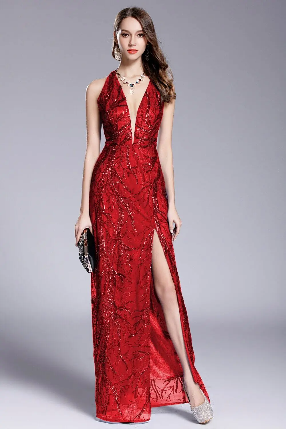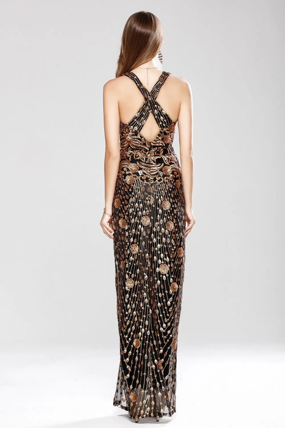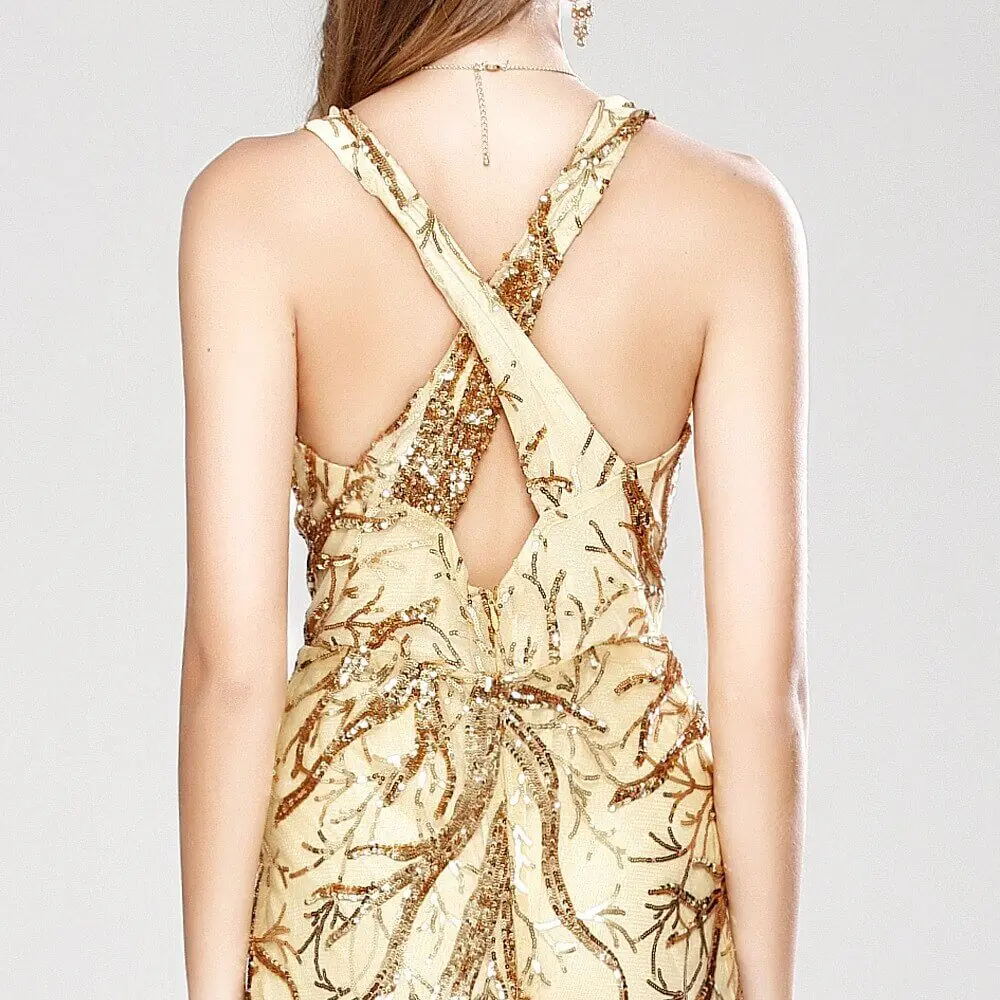 Women's Sexy Low V Neck Sleeveless Cross Open Back Embroidery Sequined Prom Party Dresses Long Runway Dresses - Image 10