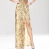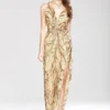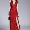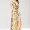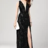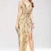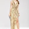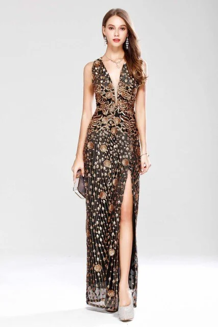 Women’s Party Prom Sexy V Neck Sleeveless Split Piping Beaded Appliques Elegant Designer Long Maxi Dress
