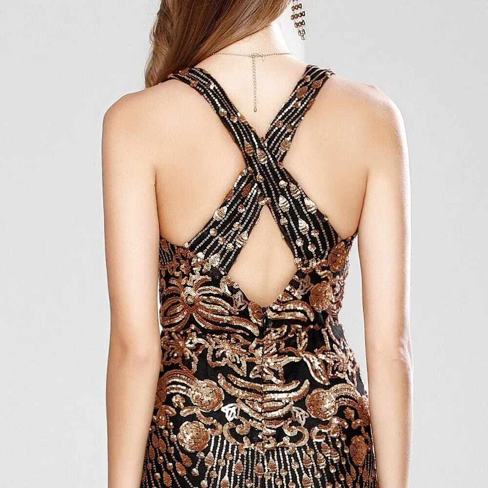 Women's Sexy Low V Neck Sleeveless Cross Open Back Embroidery Sequined Prom Party Dresses Long Runway Dresses - Image 9