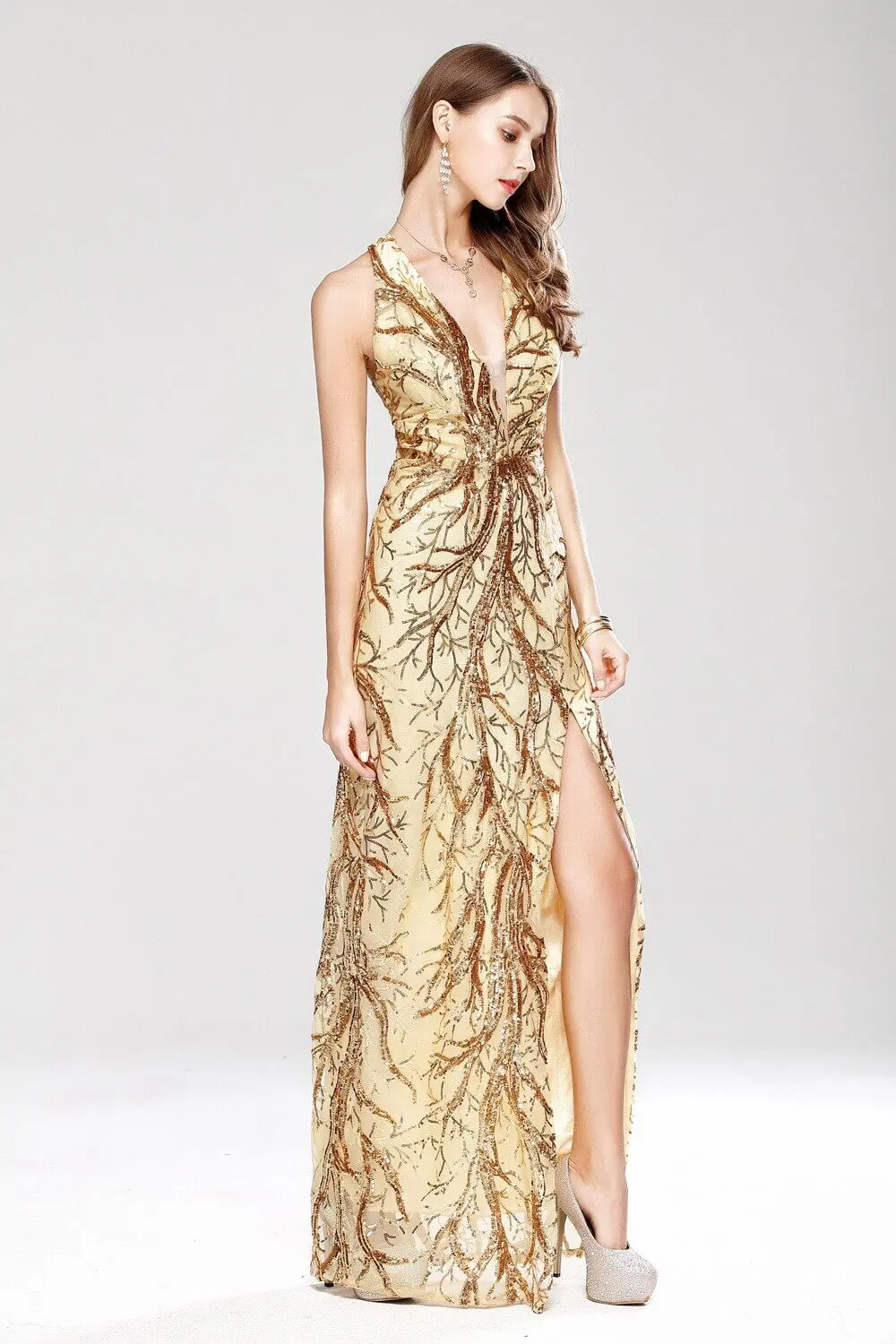 Women's Party Prom Sexy V Neck Sleeveless Split Piping Beaded Appliques Elegant Designer Long Maxi DressAlternative view of Women's Party Prom Sexy V Neck Sleeveless Split Piping Beaded Appliques Elegant Designer Long Maxi Dress