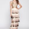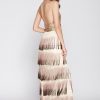 Women’s Sexy Halter V Neck Sleeveless Open Back Tiered Tassels Evening Prom Fashion Long Runway Designer Dresses