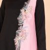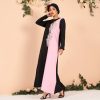 Autumn and Winter Ladies Fashion Pink Change Black Color Matching Applique Commuter Plus Size Women's Dress - Image 3