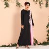 Autumn and Winter Ladies Fashion Pink Change Black Color Matching Applique Commuter Plus Size Women's Dress - Image 2