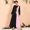 Autumn and Winter Ladies Fashion Pink Change Black Color Matching Applique Commuter Plus Size Women’s Dress