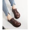 Original Spring and Summer  Round Toe Lace-up Flat Sole Women Shoes British Style Genuine Leather Simple Flats - Image 3