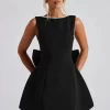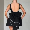 This elegant and trendy A-line dress is a must-have for the summer season. Featuring a stylish bow on the back adorned with delicate pearls, it’s the perfect combination of chic and playful. The dress has a flattering A-line shape, accentuating the waist and creating a beautiful silhouette. The high waist design adds a touch of sophistication, while the sleeveless design and soft polyester fabric ensure comfort during warmer days. Perfect for weddings, parties, or casual outings, this dress is a go-to for a stylish, feminine look.