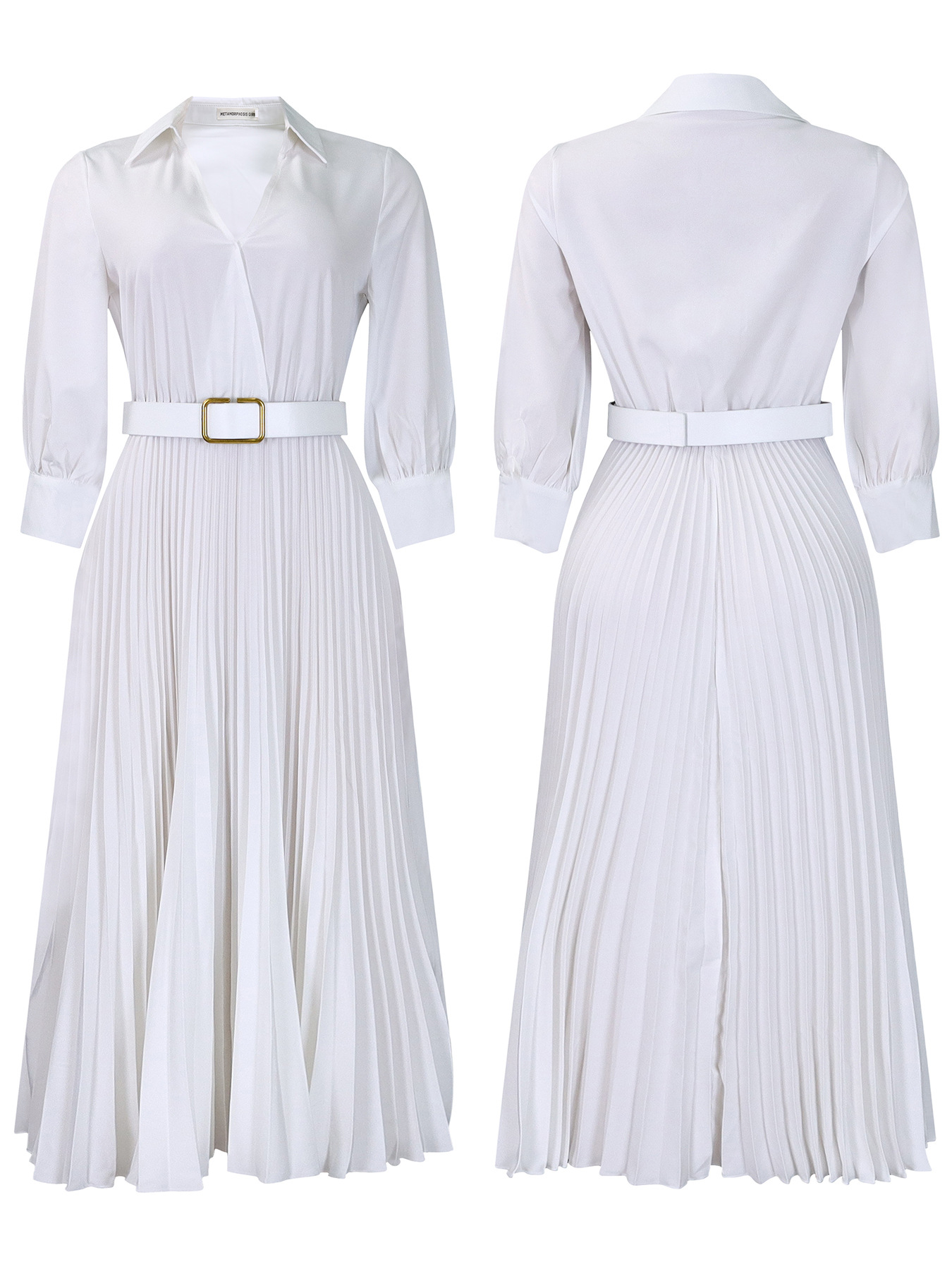 - Design Details: V – neck, 3/4 sleeves, high waist, umbrella skirt, zipper placket, waist – fitting