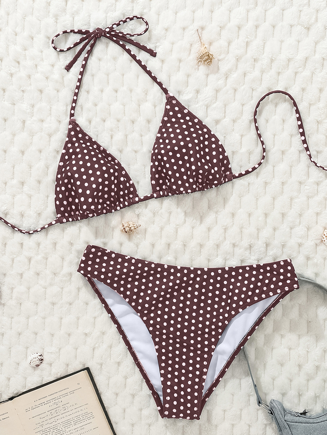 - Design: Print pattern, adjustable tie straps, bikini top with padding (no underwire), matching bikini bottom