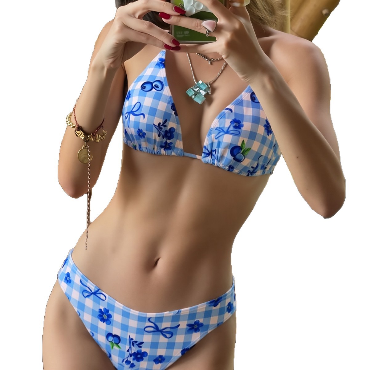 Print Tie Strap Bikini Womens Vacation Swimwear