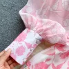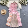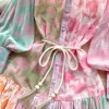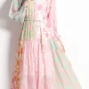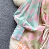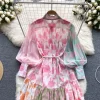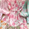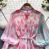 Printed A-Line Lantern Sleeve Ankle Length Dress for Women