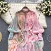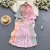 - Design Details: O-Neck, Lantern Sleeve (Three Quarter length), Lace-up decoration, A-LINE silhouette, Ankle-Length