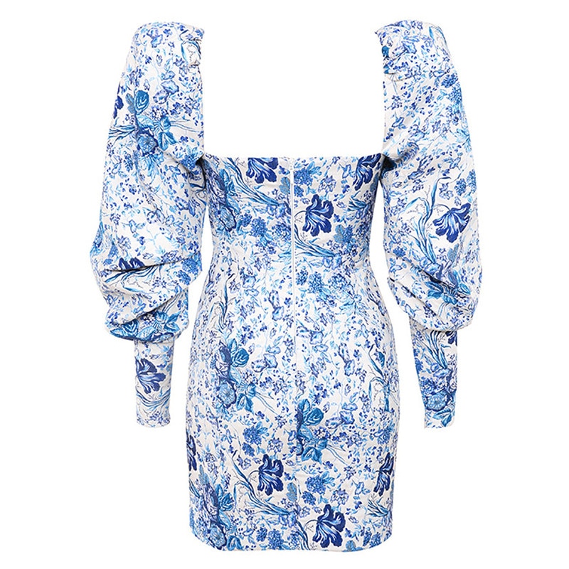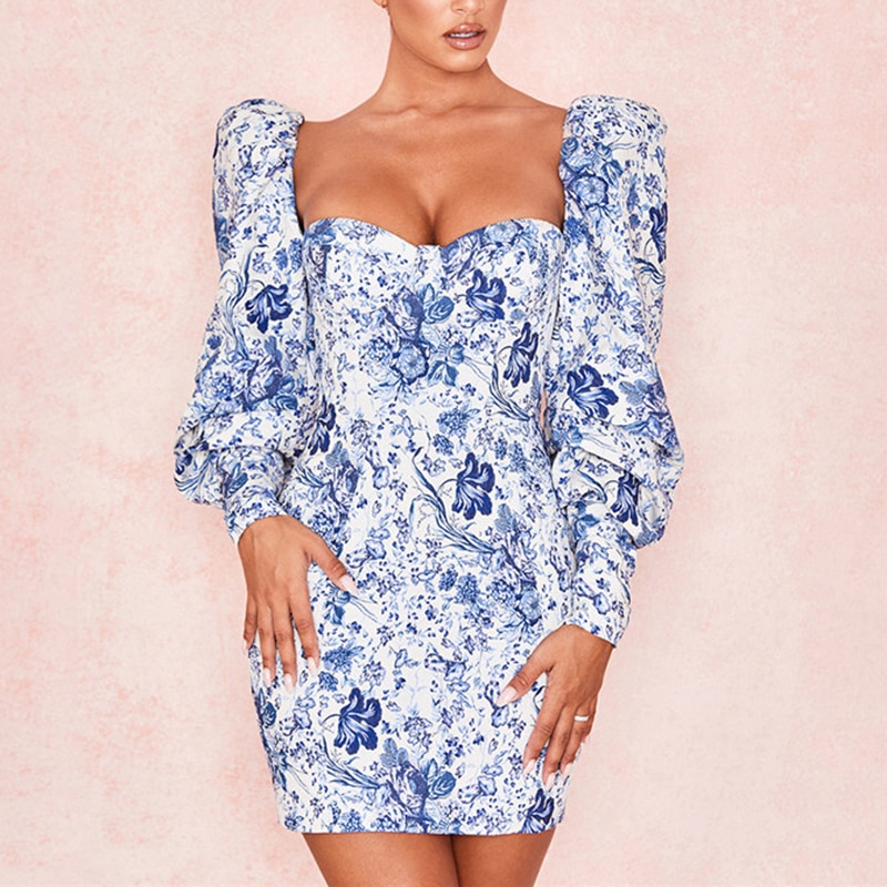 Pull sleeve floral prnt bodycon dress women Slim fit strapless  party dress Autumn Elegant womens dresses mini vestidos - Hplify