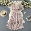 Retro Floral Print A Line Chiffon Midi Dress for Women Summer Vacation - Image 5