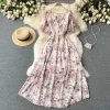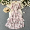 Retro Floral Print A Line Chiffon Midi Dress for Women Summer Vacation - Image 2