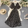 Retro Floral Print A Line Chiffon Midi Dress for Women Summer Vacation