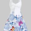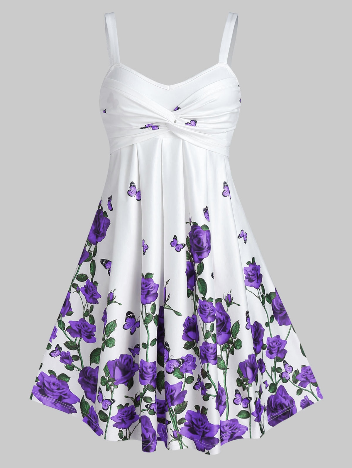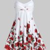 Rose Flower Print High Waist A Line Summer Sexy Dress Spaghetti Strap Women Mini Dress Night Club Party Dress Casual Home Dress