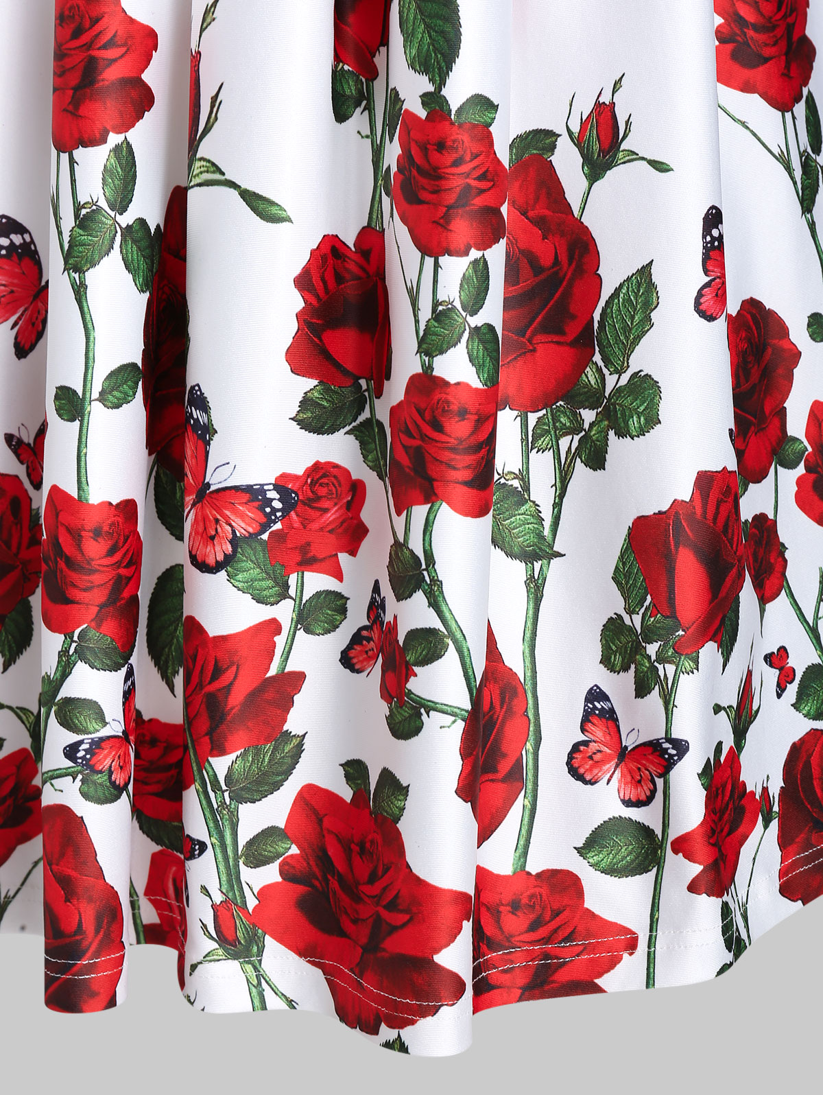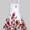 Rose Flower Print High Waist A Line Summer Sexy Dress Spaghetti Strap Women Mini Dress Night Club Party Dress Casual Home Dress - Image 10