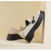 Color Matching Black and White Square Toe Retro Chunky Heel Shoes Women’s Shoes