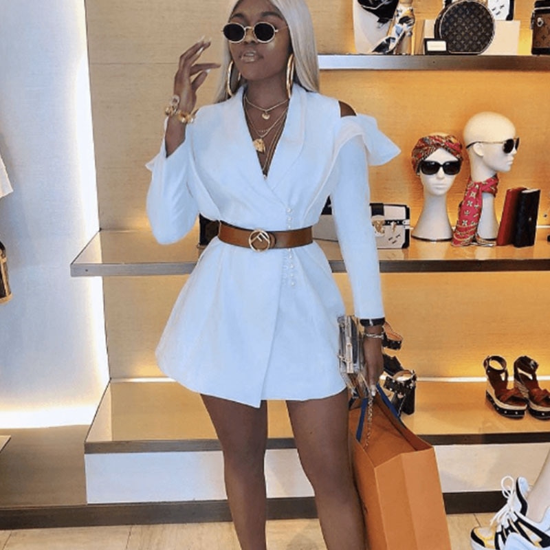Ruffles sleeve white blazer dress women Solid color white short autumn dress Eleganf office ladies workwear vestidos