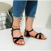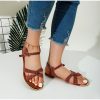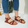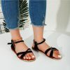 Sandals Women Solid Color Buckle Strap Flat Sandals Ladies Outside Peep Toe Strappy Cross Shoes Female Summer Beach Shoes