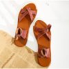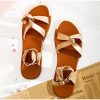 Sandals Women Solid Color Buckle Strap Flat Sandals Ladies Outside Peep Toe Strappy Cross Shoes Female Summer Beach Shoes - Image 2