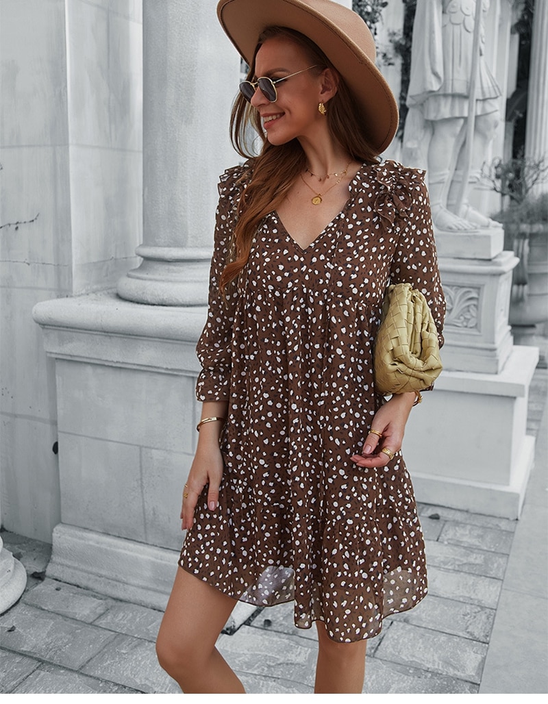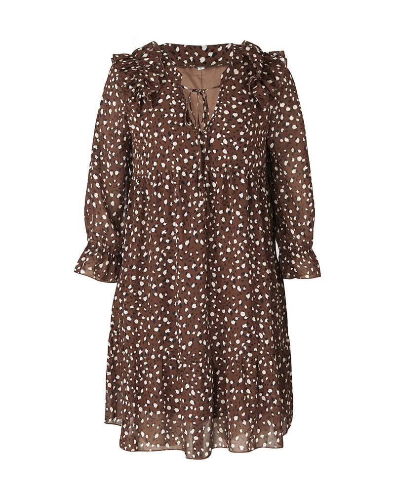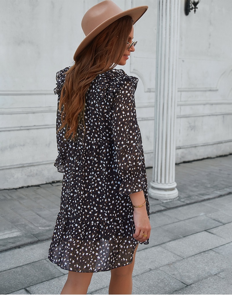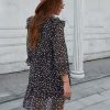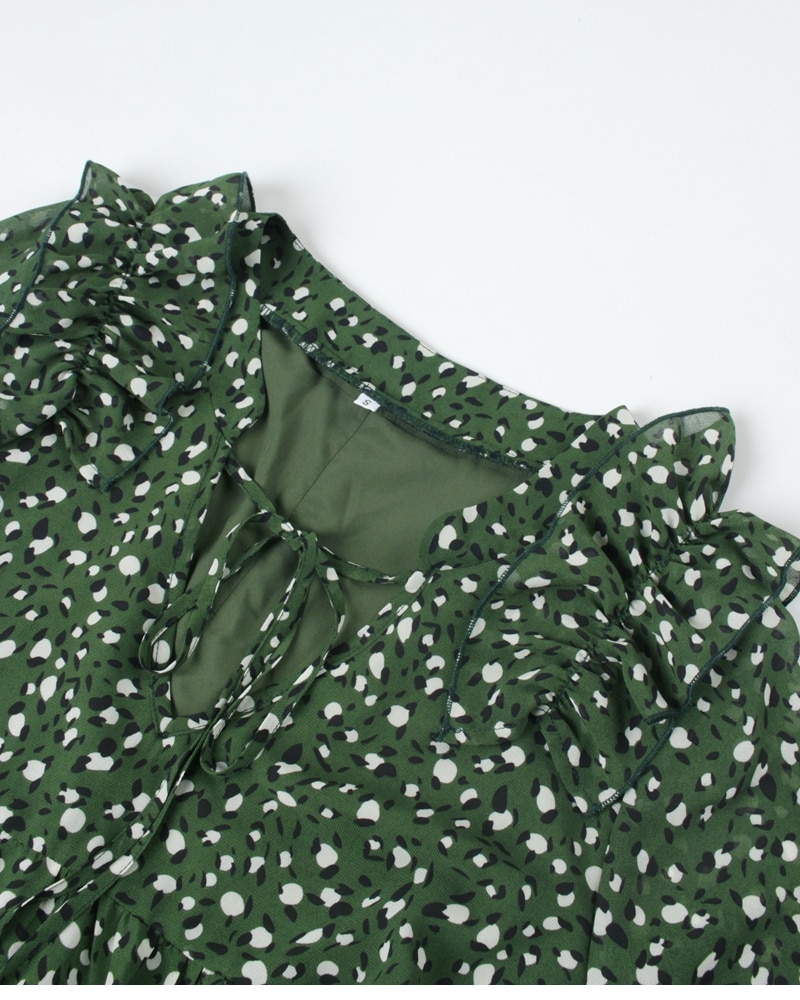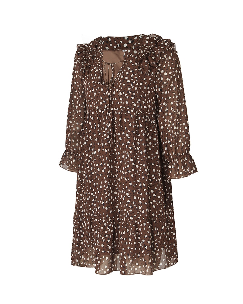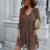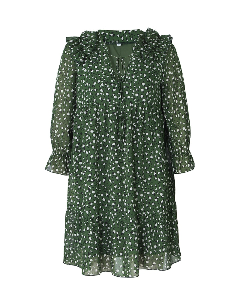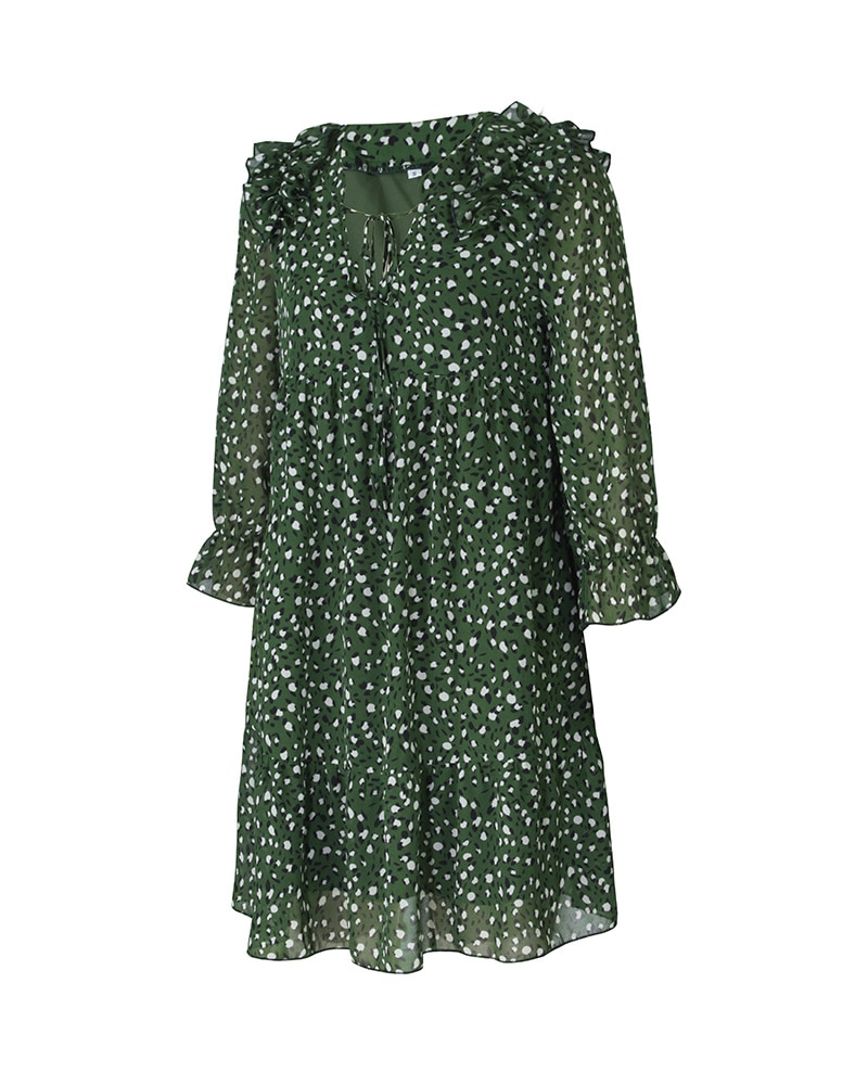 Sexy Leopard Dot Print Short Dress For Women Casual V Neck Ruffles Full Sleeve Spring Summer Chiffon Mini Dress