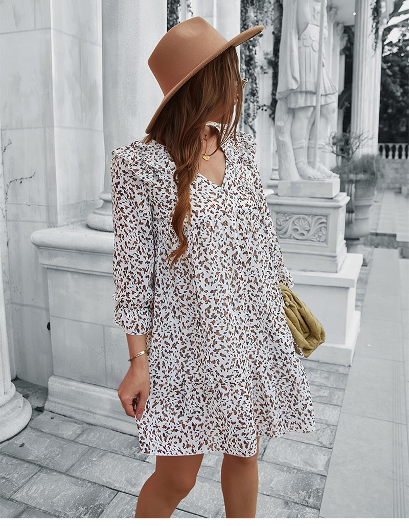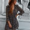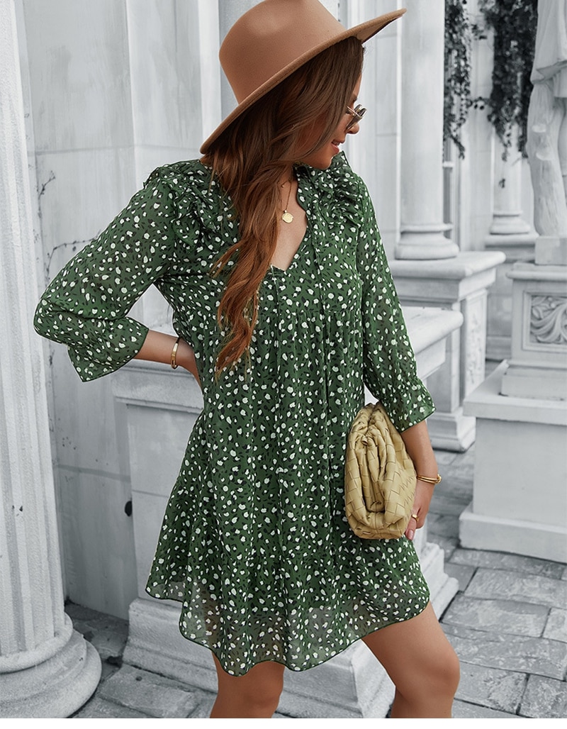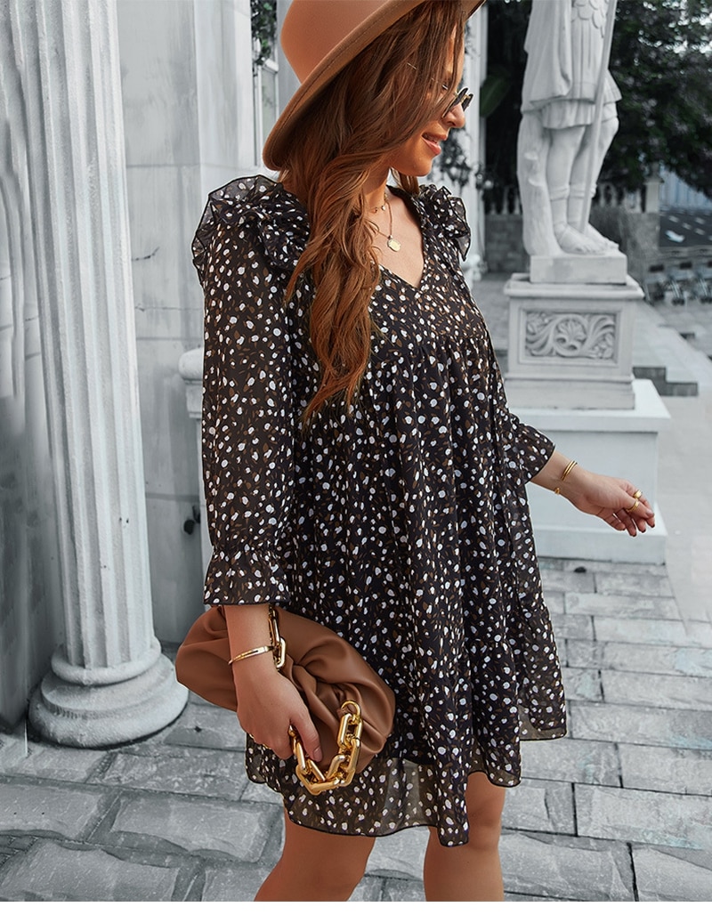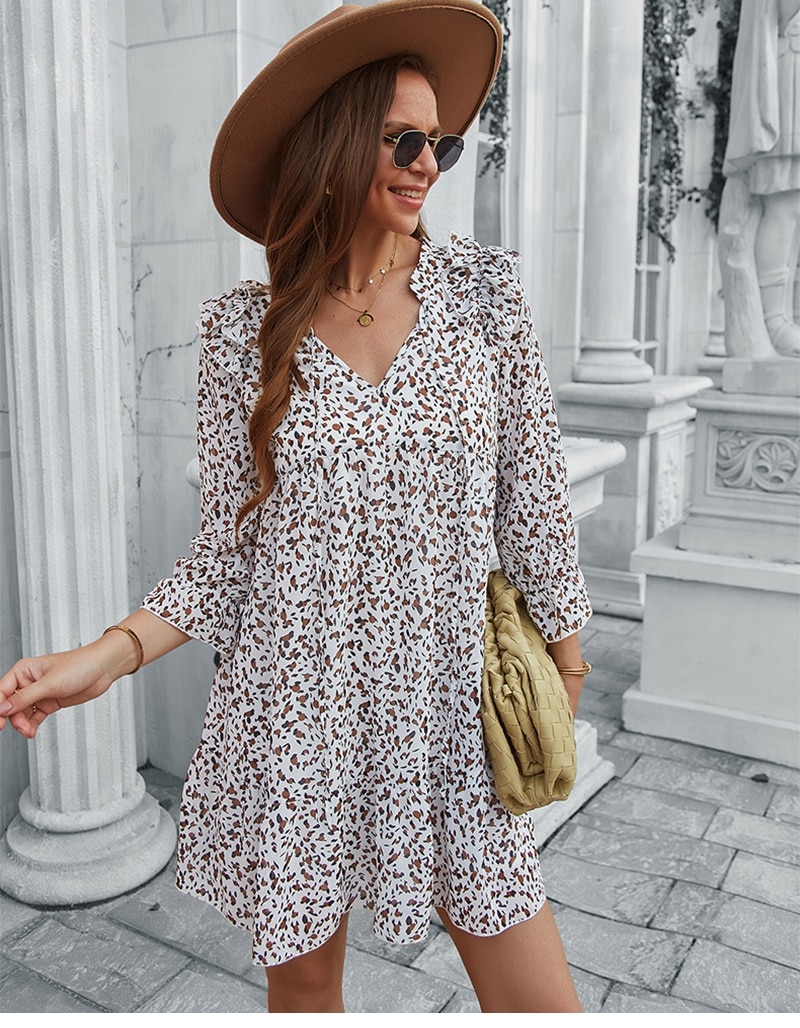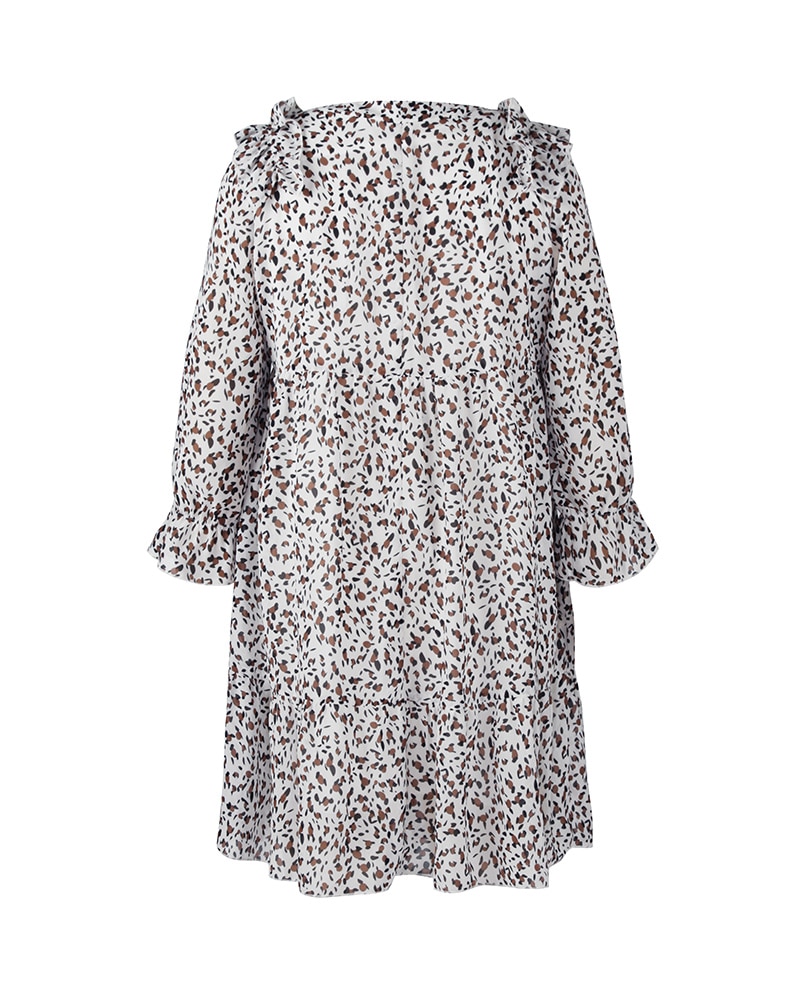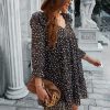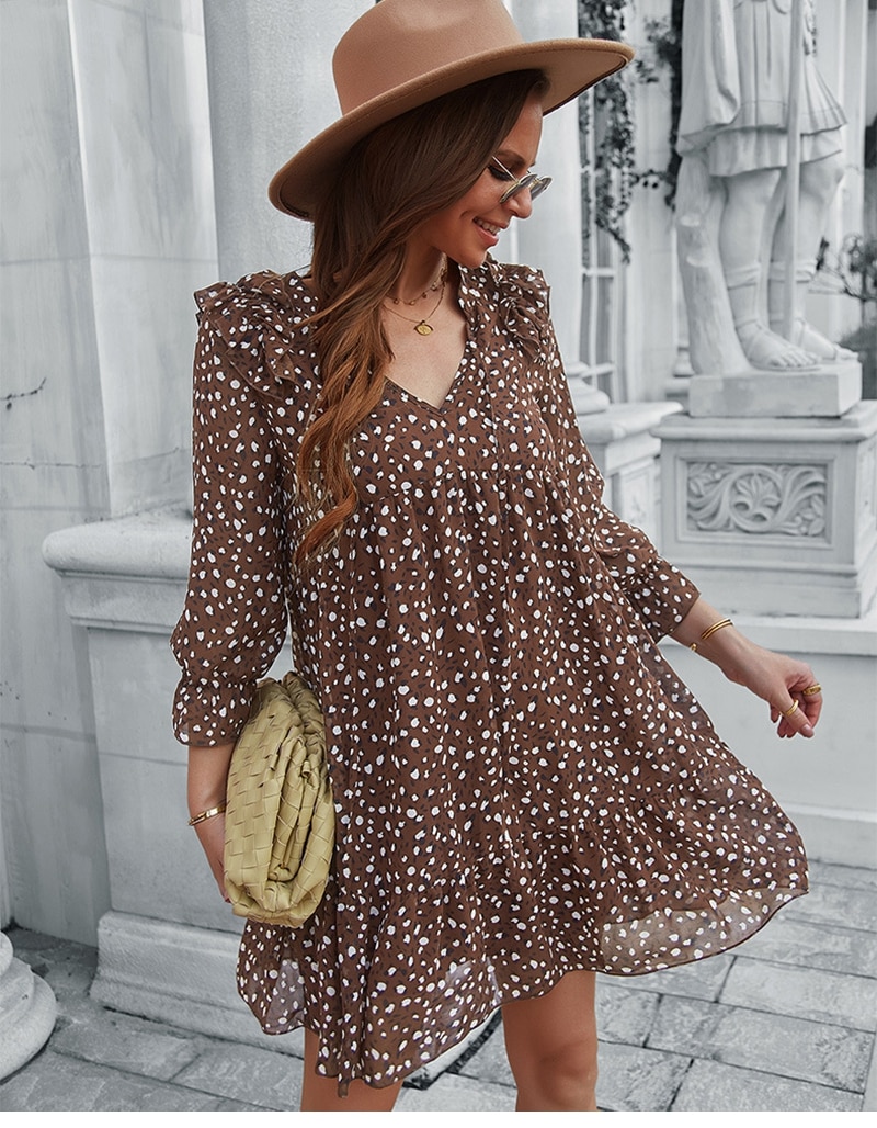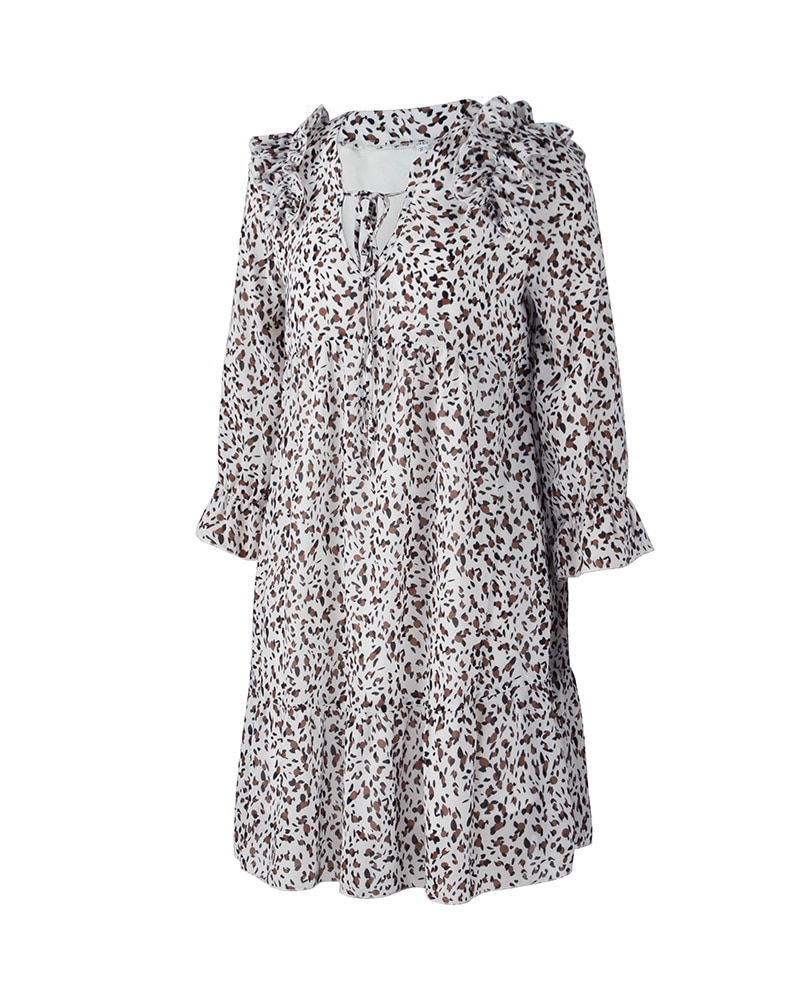 Sexy Leopard Dot Print Short Dress For Women Casual V Neck Ruffles Full Sleeve Spring Summer Chiffon Mini Dress