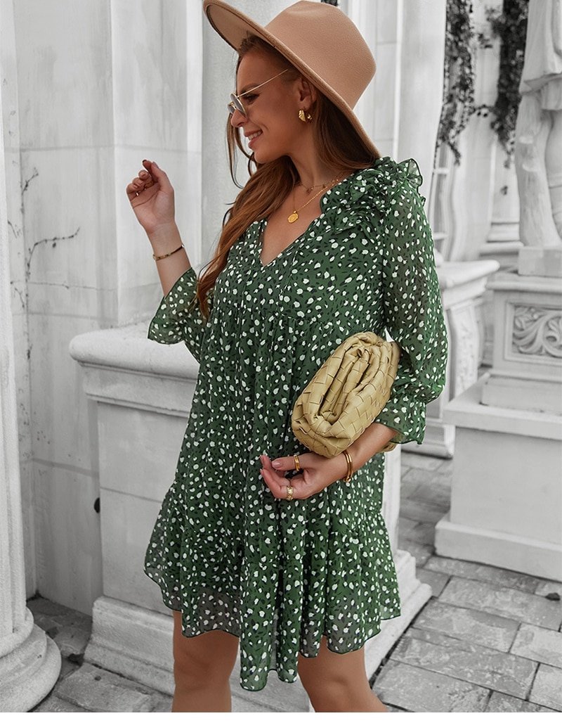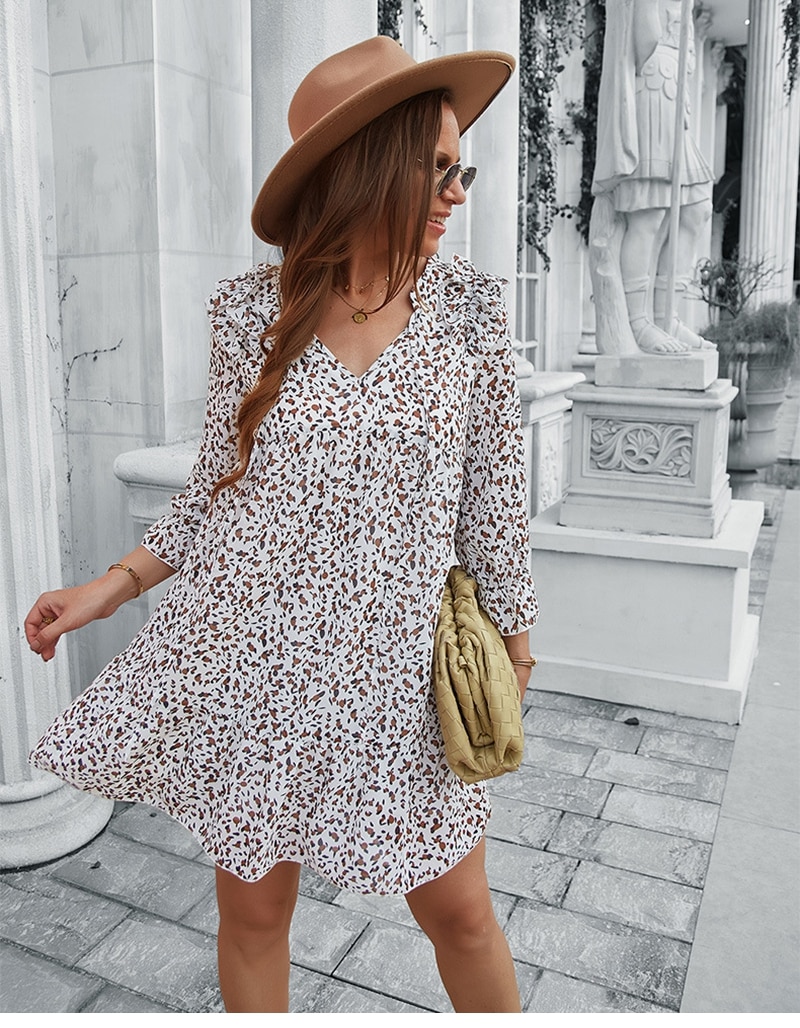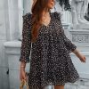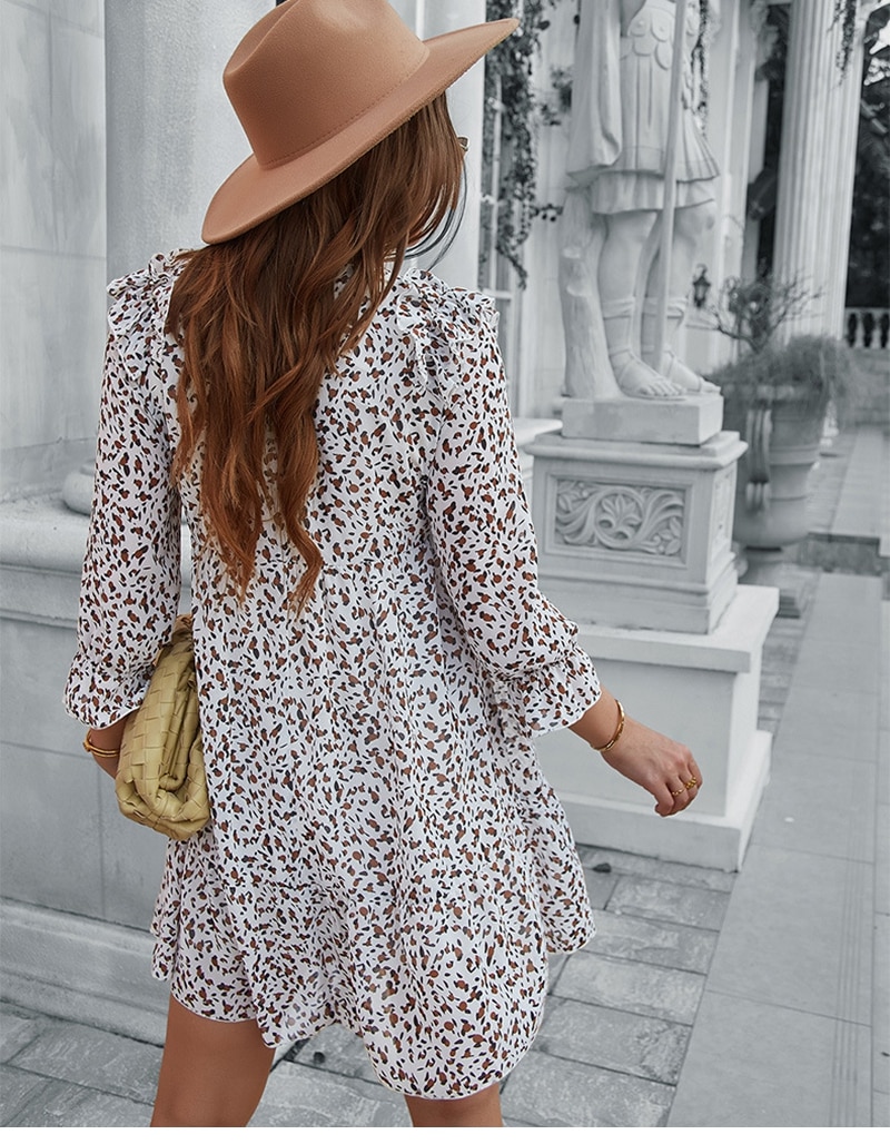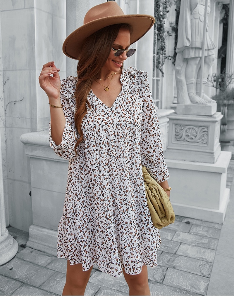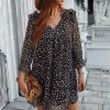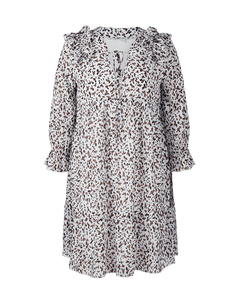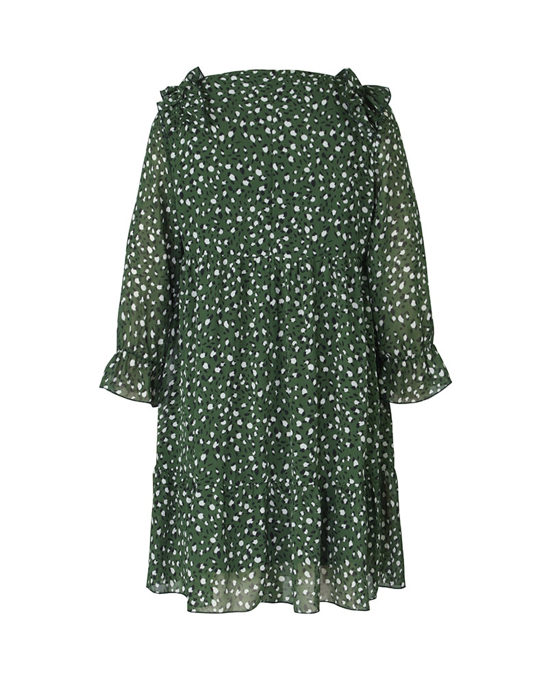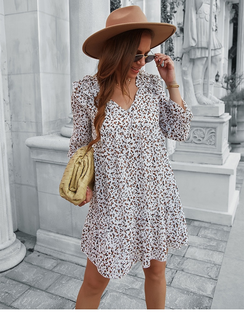 Sexy Leopard Dot Print Short Dress For Women Casual V Neck Ruffles Full Sleeve Spring Summer Chiffon Mini Dress