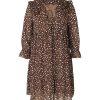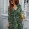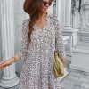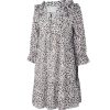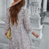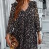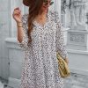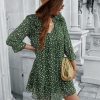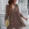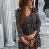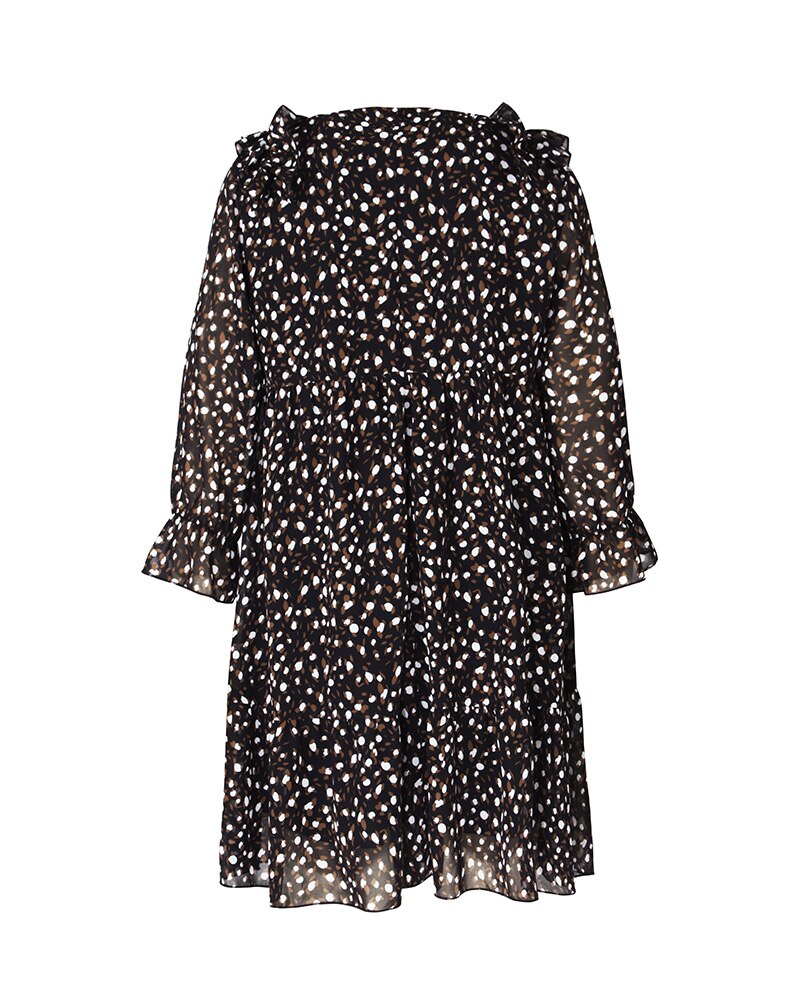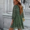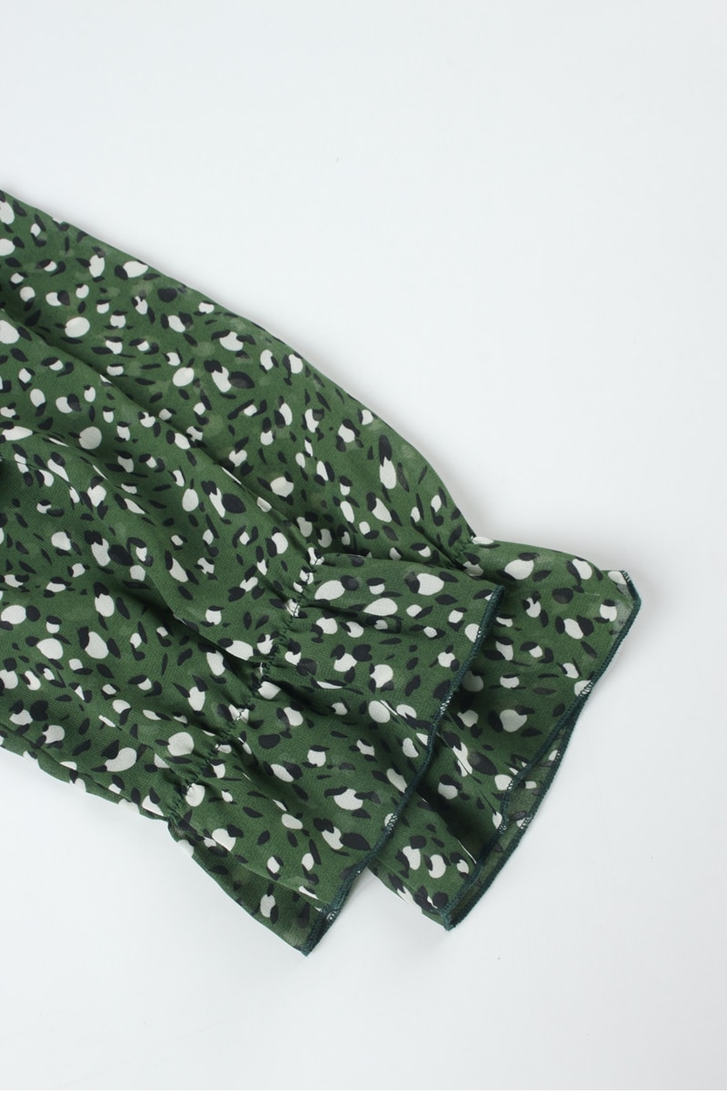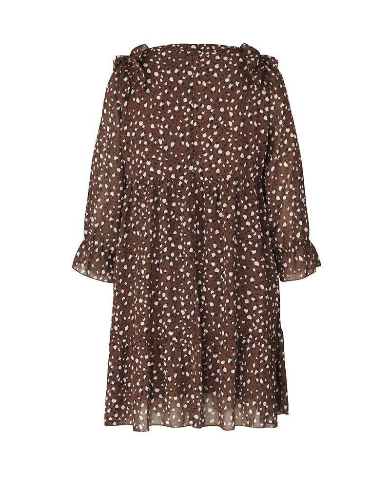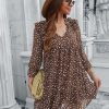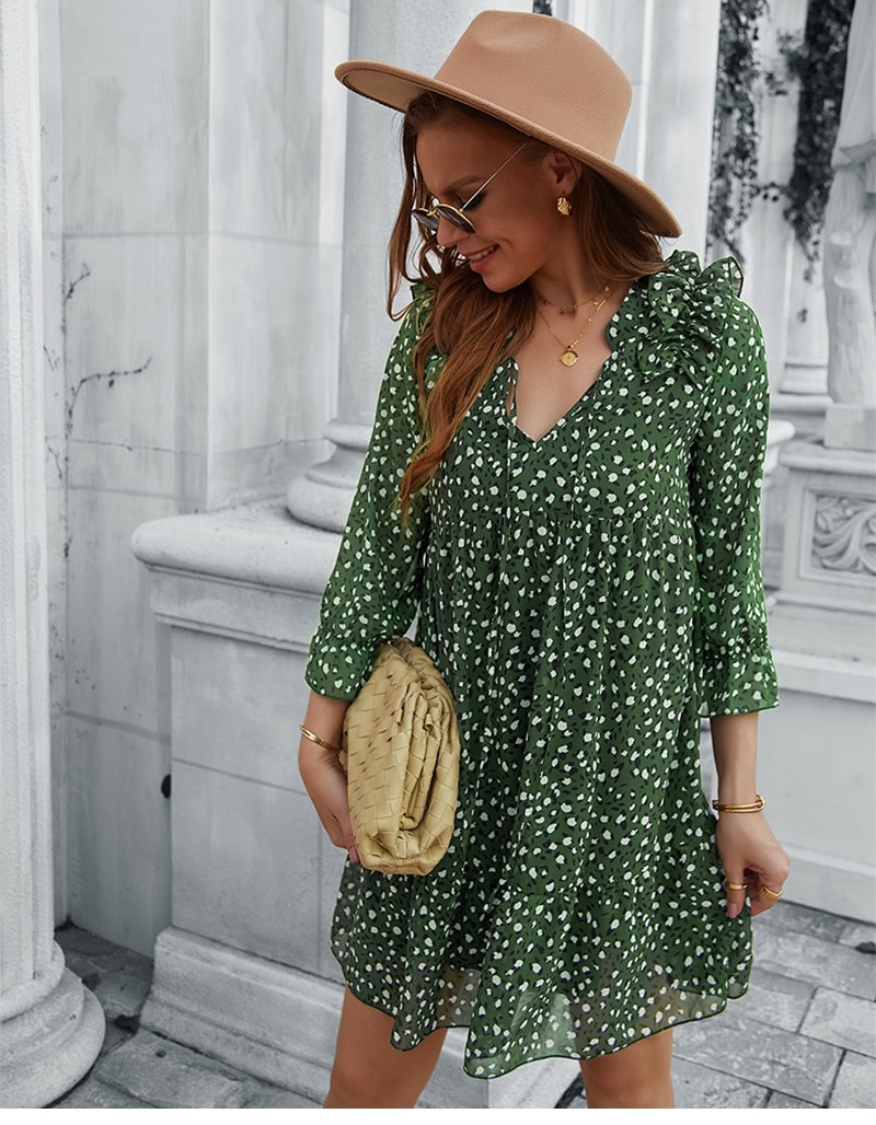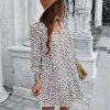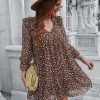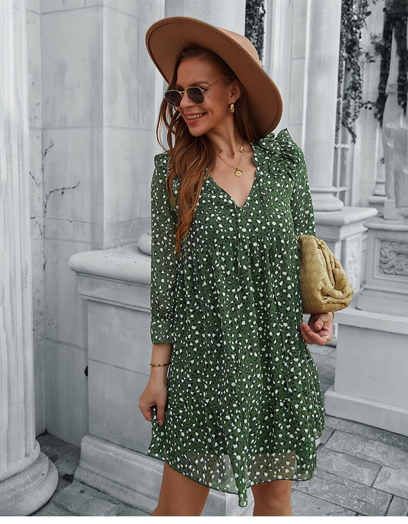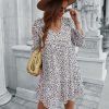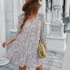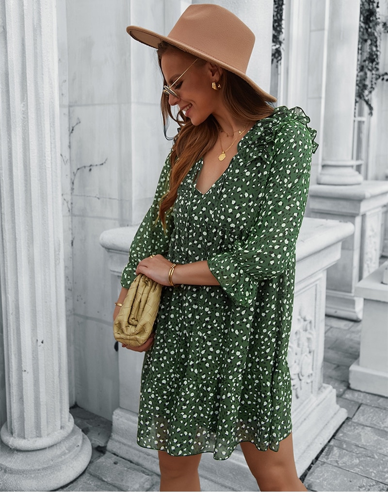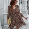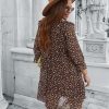 Sexy Leopard Dot Print Short Dress For Women Casual V Neck Ruffles Full Sleeve Spring Summer Chiffon Mini Dress