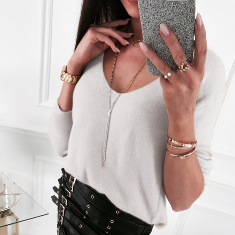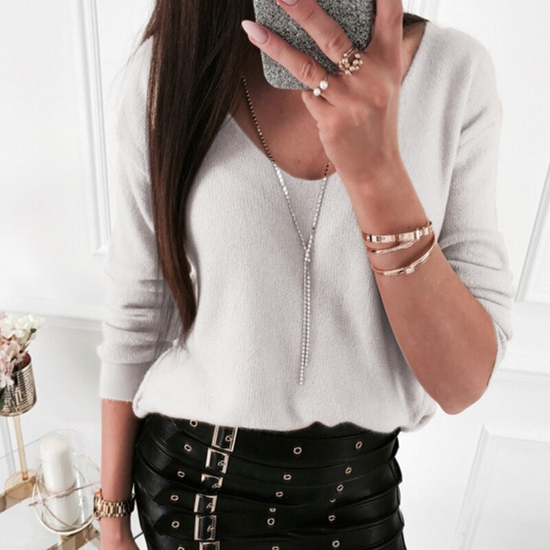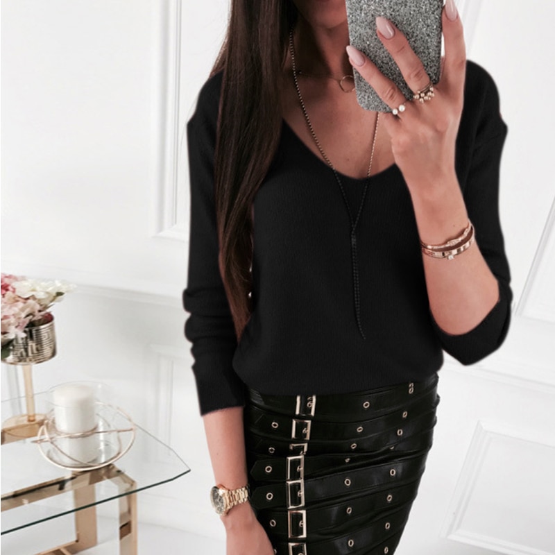 Solid Color Thin Pullover Shirt Ladies Loose Versatile Long Sleeve Spring Autumn Shirt