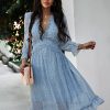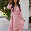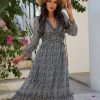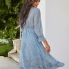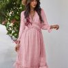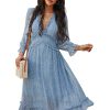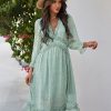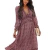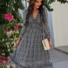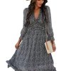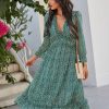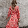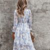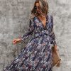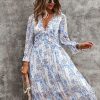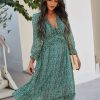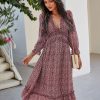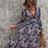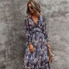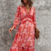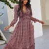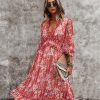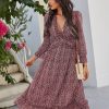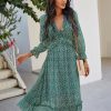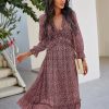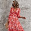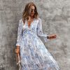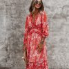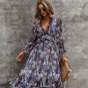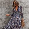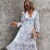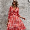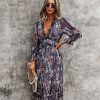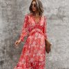 Sexy V Neck Floral Dress Ladies Butterfly Sleeve High Waist Casual Print Dresses For Women Summer Chiffon Dress