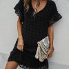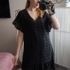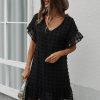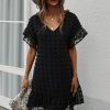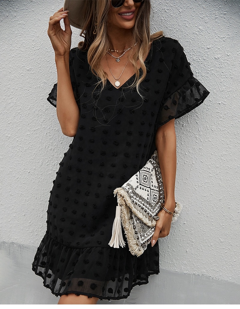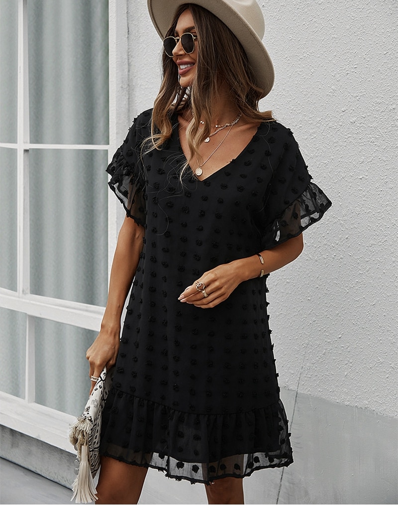 Sexy V Neck Short Dress Women Casual Solid Hairball Black Dresses For Laddies Spring Summer Holiday Style Dress New