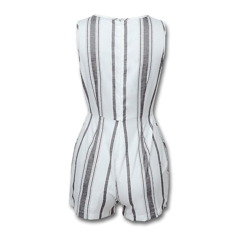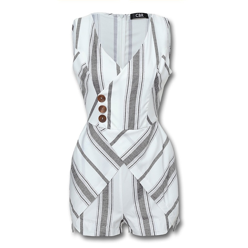 Sleeveless Striped Buttoned Design Romper Women Sleeveless Shorts Jumpsuit Summer Casual V Neck Overalls combinaison femme - Hplify