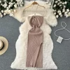Get ready to turn heads this summer with our Slim Fit Summer Knit Dress. This strapless empire waist knee-length dress combines style and comfort. The slash neck design adds a touch of elegance, while the slim fit flatters your figure. Made with synthetic fiber knitting, it’s perfect for streetwear looks. Whether you’re heading out for a casual day or a summer evening event, this dress has got you covered.