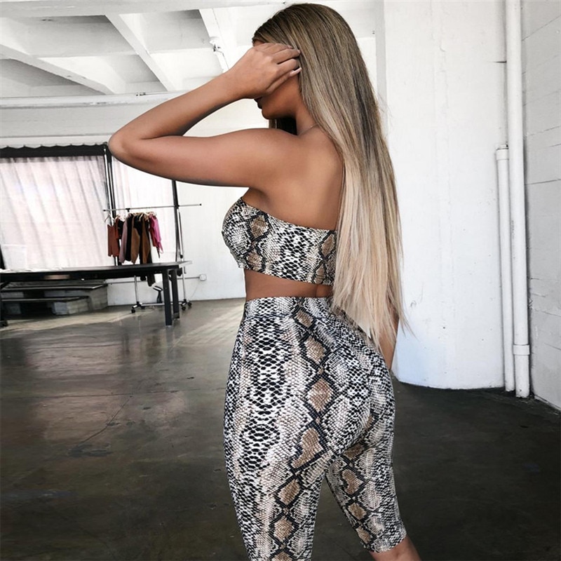 Snake print strapless two piece set women Crop tops and shorts skinny suits Sexy night club outfits Summer woman tracksuits - Hplify