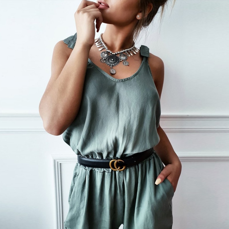 • Sleeveless Striped Buttoned Design Romper Women Sleeveless Shorts Jumpsuit Summer Casual V Neck Overalls combinaison femme - Hplify