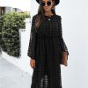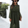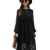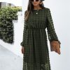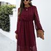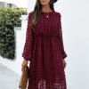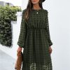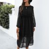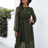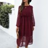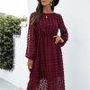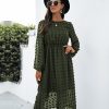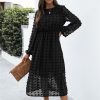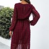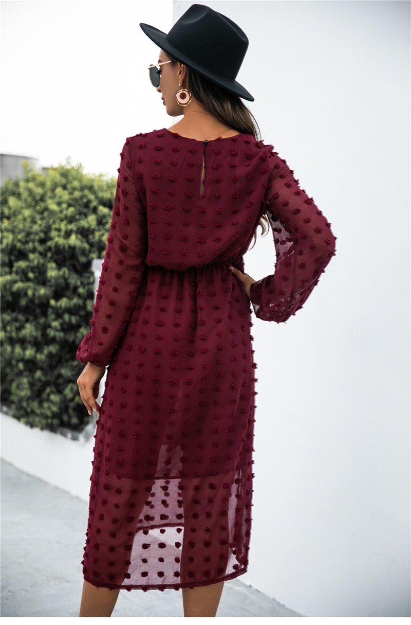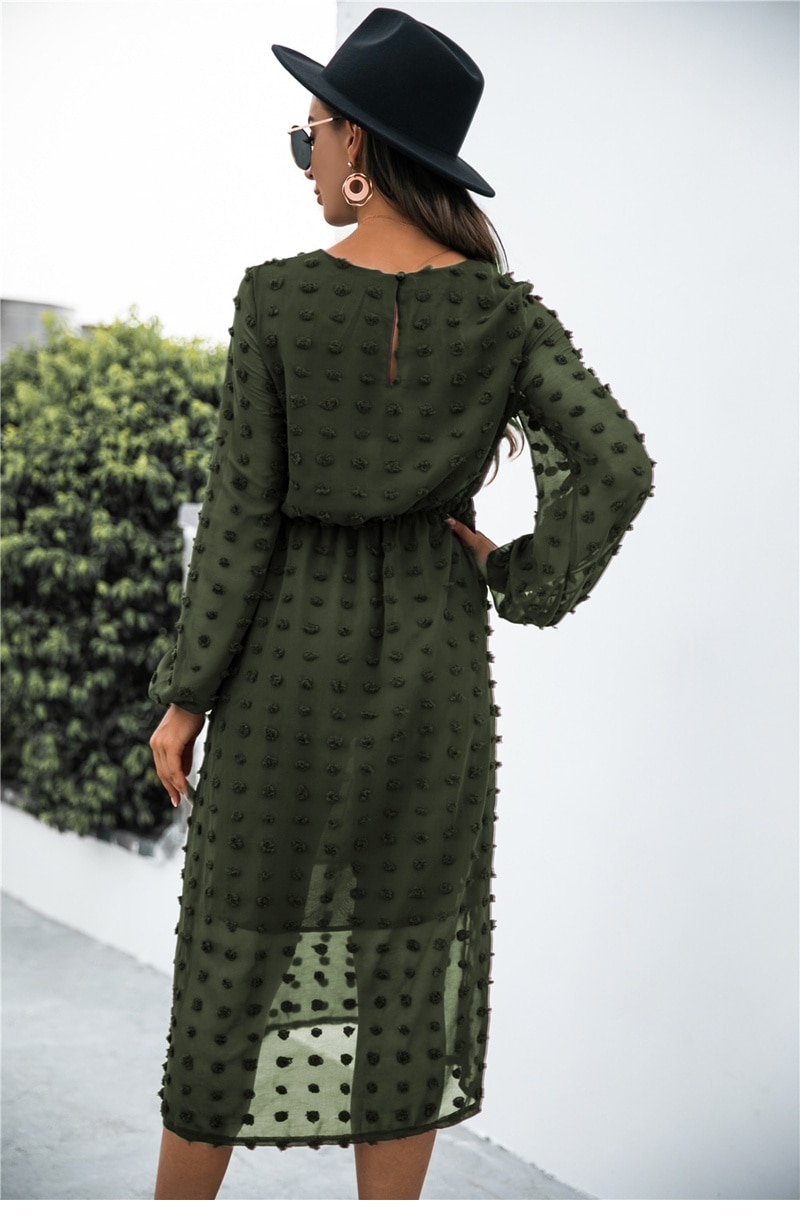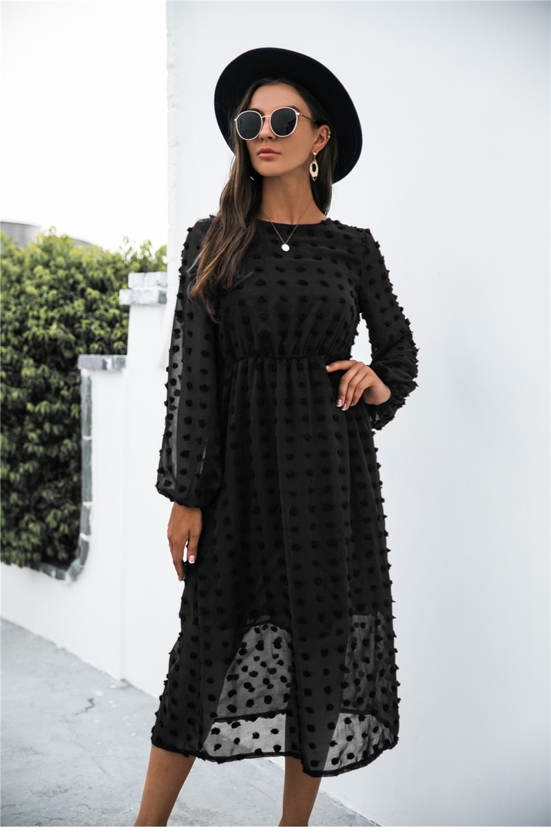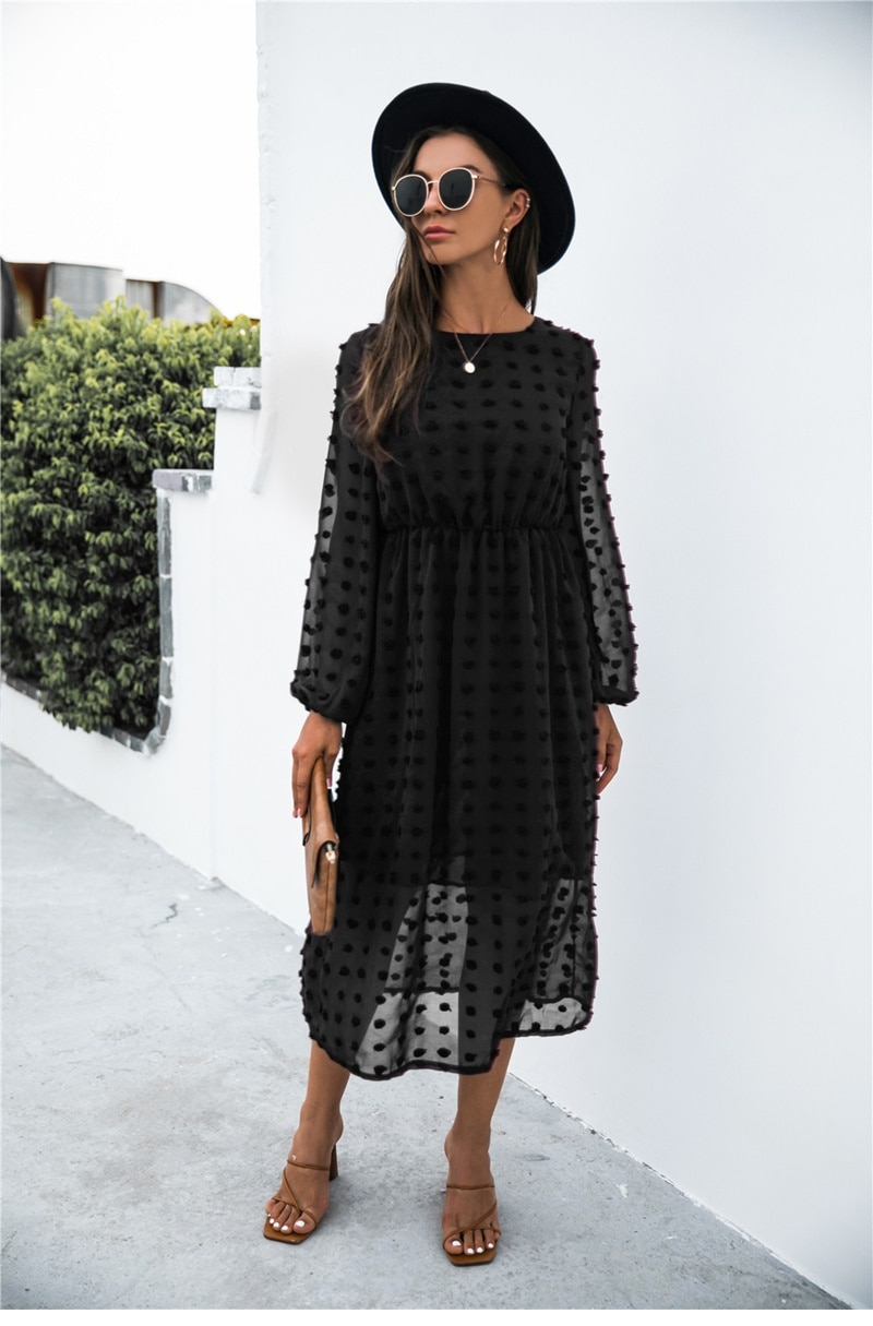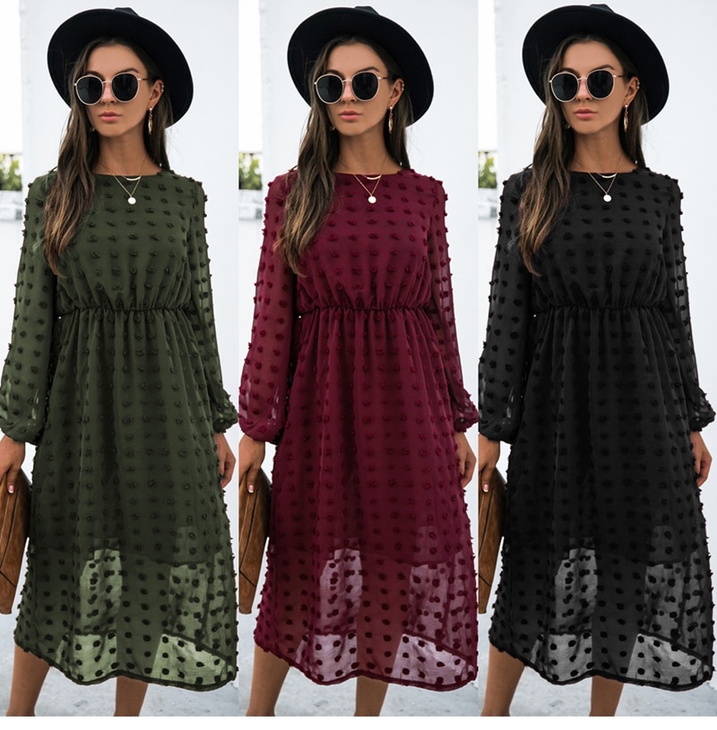 Spring Autumn Long Sleeve Jacquard Hair Ball Dress For Women O Neck Waist Casual All Match Solid Color Long Dress